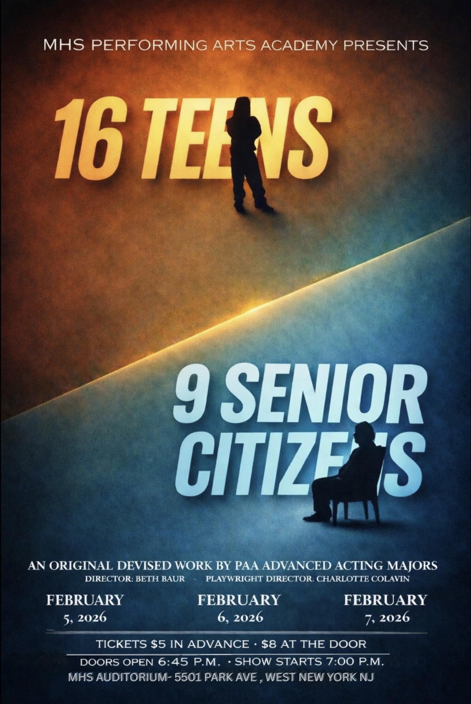 The MHS Performing Arts Academy proudly presents 16 Teens / 9 Senior Citizens, an original devised work by our Advanced Acting Majors. This powerful and thought-provoking production explores voices across generations through student-created performance.